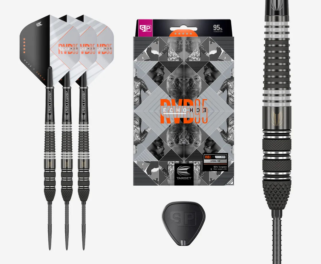 The range is completed with Black Pro Grip shaft exclusive to RVBxEcho and signature RVBxEcho flights.